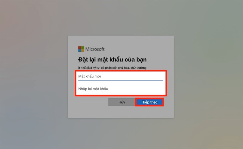 Bước 4: Nhập mật khẩu mới > Tiếp theo.